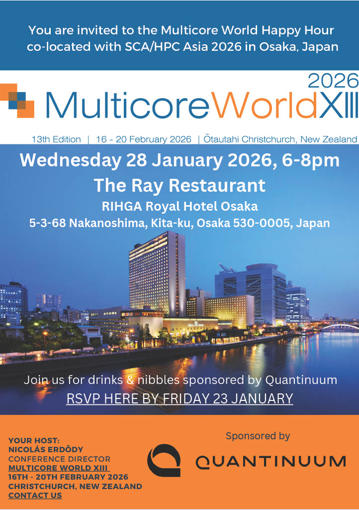 Towards the 13th Multicore World conference (16-20 February 2026, Christchurch, New Zealand) we meet this time in Osaka -collocated with SCA/HPCAsia.